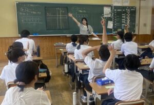 中学校では自己紹介に加えて、松江さんへの質問タイムも。大学のことなどたくさん質問が出ていました!