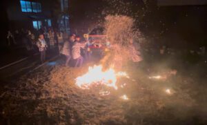 例大祭への事前の参加申し込みは5名のみでしたが、神輿が動き出す頃には、当日の熱気や担ぎ手の掛け声、地域の方々の活気に触れた生徒たちが、「自分も担ぎたい!」「行列に参加したい!」と次々に集まり、最終的には20名を超える生徒が参加し、過去最多となりました。