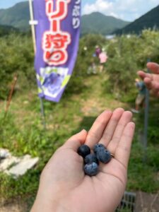 日原地区の放課後子ども教室「あゆっこワクワク広場」の活動や、ブルーベリー狩り体験などへ参加しました。