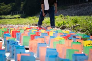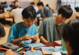 また、初年度に引き続き、準備段階から多くの方々に関わってほしいという思いから、灯籠の制作イベントを8月2日(土)に実施しました。町内の小中学生や地元の大人の方々、さらにはこの日偶然、津和野町を訪れていた外国人観光客の方々も参加し、約40名ほどが参加しました。