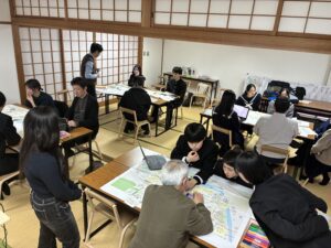 その後は、「なぜ大学生が津和野と関わることが大切なのか?」をテーマに、卒業生の佐々木太一さんの進行で哲学対話が行われました。