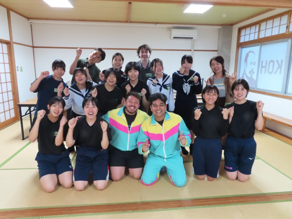 ワークショップ終盤には、コロンビアで流行している音楽に合わせ、ザカリーさんとヘオバニーさんがダンスを披露してくれました。生徒たちも自然と輪に入り、笑顔と拍手が会場に広がっていました。