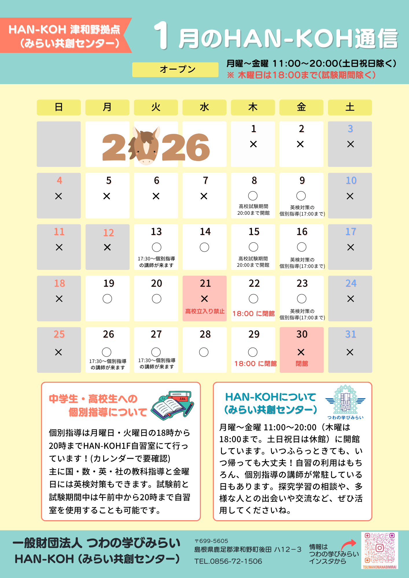 2026年1月のHAN-KOH(みらい共創センター)スケジュールを掲載します。