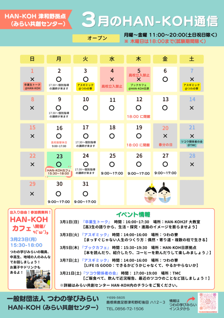 3月のHAN-KOH(みらい共創センター)スケジュール